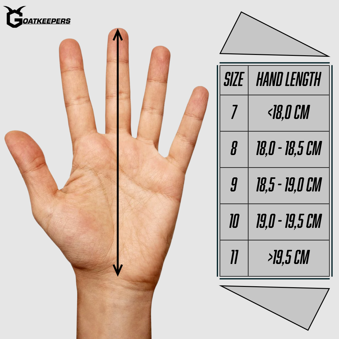 Miss die Länge deiner Hand und vergleiche sie mit unserer Größentabelle. So findest du die Größe, die optimal sitzt.